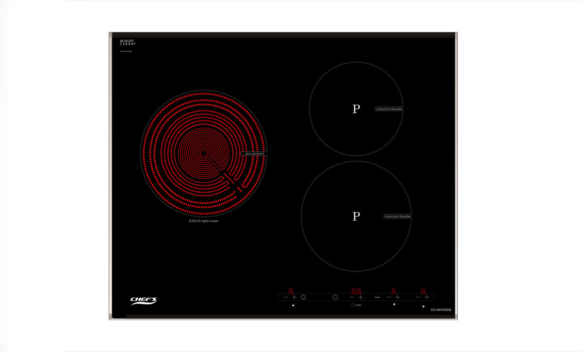Bếp điện từ Chefs EH-MIX545N có bảng điều khiển tách biệt cho từng lò nấu. Các phím điều khiển riêng biệt dễ dàng thao tác. Hiển thị Led giúp khách hàng chọn mức nhiệt độ đun nấu phù hợp với nhu cầu. Bếp có nhiều tính năng tích hợp phụ đun nấu. Tính năng booster kích công suất, nhiệt độ giúp nấu nhanh. Tính năng điều chỉnh các mức nấu linh hoạt. Lò từ có tự động nhận diện đáy nồi, tự động ngắt khi nhấc nồi nấu ra khỏi bếp. Tùy chỉnh hẹn giờ thông mình giúp các bà nội trợ bận rộn nấu các món hầm, kho trở nên đơn giản. Tự động chia sẻ công suất giữa các lò nấu chống quá tải, quá áp an toàn sử dụng. Cảnh báo dư nhiệt vùng nấu tránh bị bỏng cho người dùng.