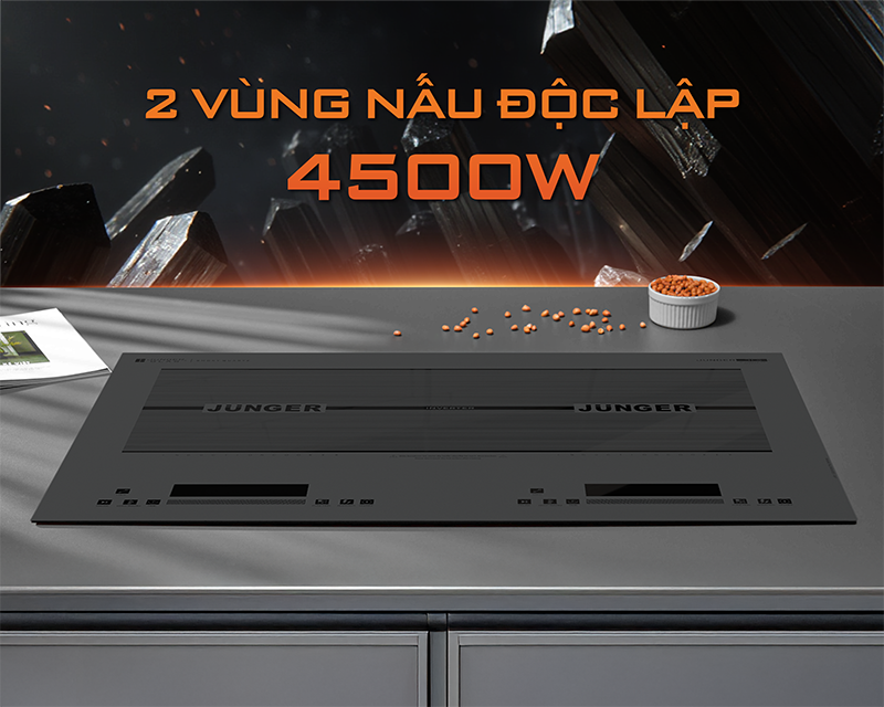 Khác với các bếp từ thông thường, Junger JG CEJ-222-INVERTER được trang bị hai Booster độc lập tổng công suất lên đến 4500W, tạo lợi thế rõ rệt cho những gia đình nấu ăn thường xuyên khi rút ngắn thời gian nấu và tăng sự chủ động trong từng thao tác.
