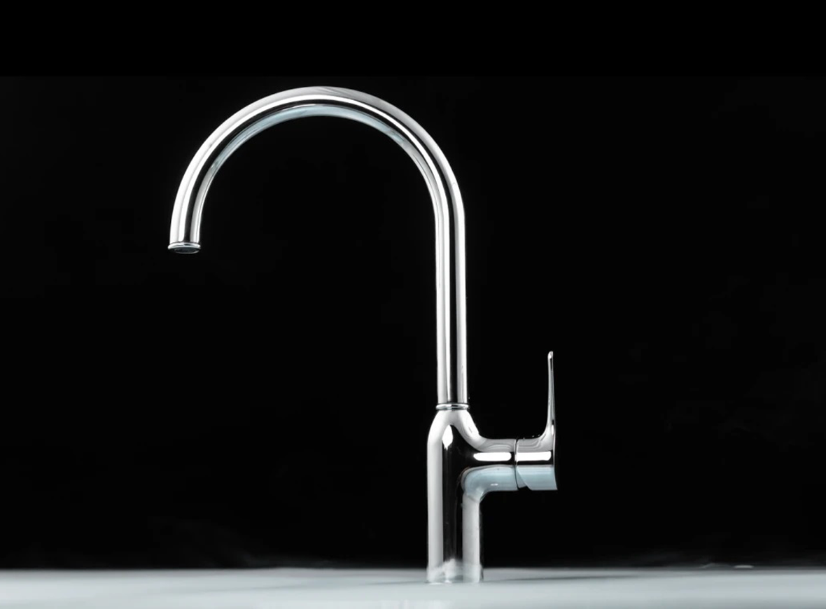 Thiết kế tay gạt ngang song song với thân vòi không chỉ tạo nên sự cân đối thanh lịch mà còn giúp việc đóng/mở trở nên mượt mà, linh hoạt. Nhờ đó, không gian bếp vừa giữ được vẻ gọn gàng, tối giản, vừa tôn lên phong cách hiện đại đầy tinh tế.