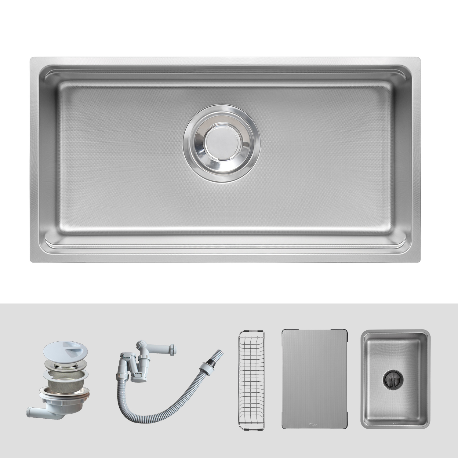 Chậu sở hữu bề mặt Linen chống trầy xước, khả năng thoát nước nhanh, hạn chế đọng nước, đồng thời tương thích với các phụ kiện thông minh như rổ trượt, thớt trượt… giúp tối ưu công năng, giữ cho khu vực rửa luôn gọn gàng, sạch sẽ và linh hoạt trong mọi thao tác.