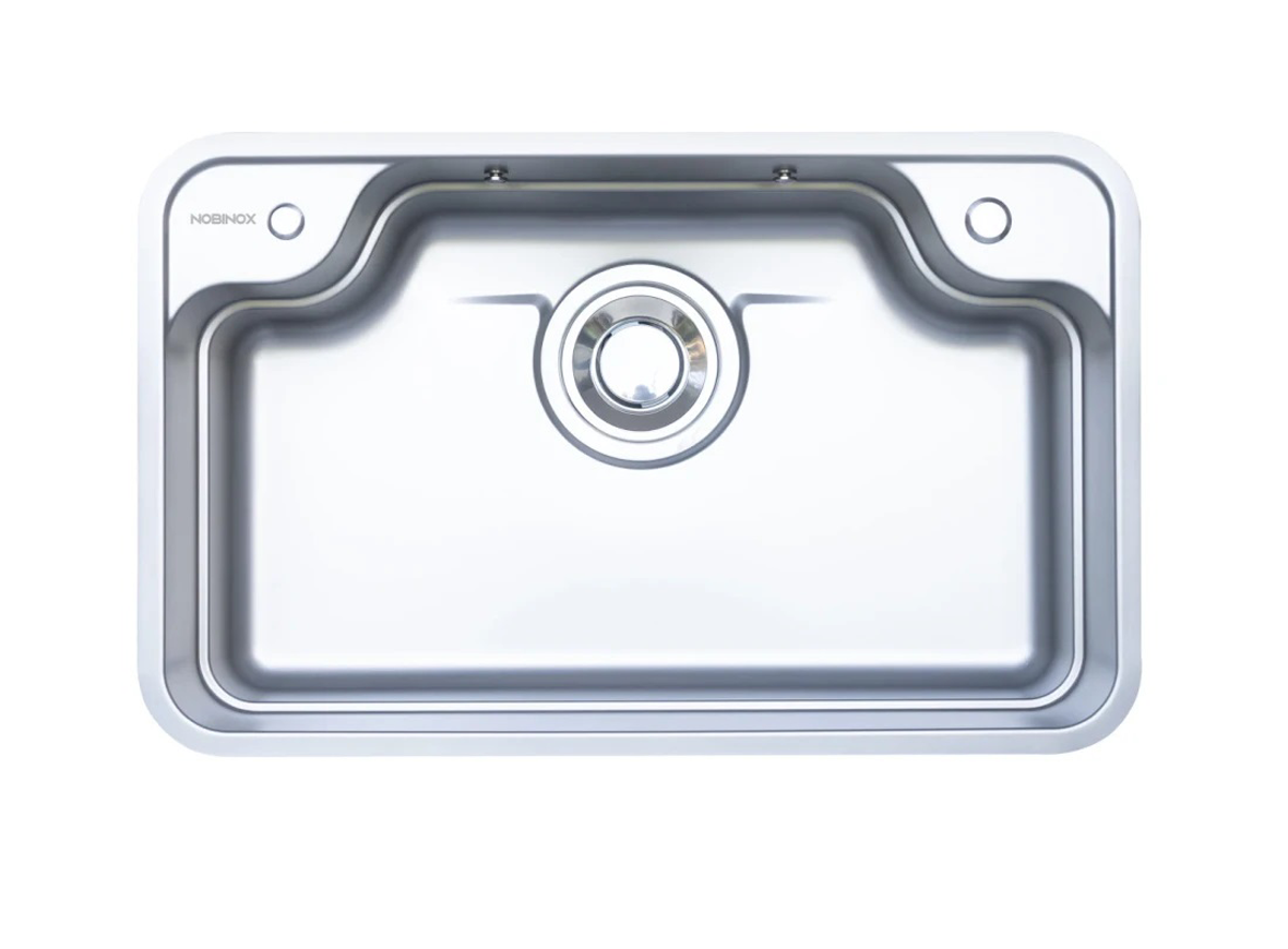 Chậu rửa bát Nobinox được làm từ chất liệu Inox 304 cao cấp, mang đến bề mặt sáng bóng hoàn hảo và cảm giác mượt mà đồng nhất. Chất liệu này không chỉ tăng tính thẩm mỹ cho không gian bếp mà còn đảm bảo khả năng chống hoen gỉ, ăn mòn vượt trội và dễ dàng vệ sinh. Sản phẩm cam kết bền đẹp theo thời gian, là sự lựa chọn lý tưởng cho mọi gia đình.