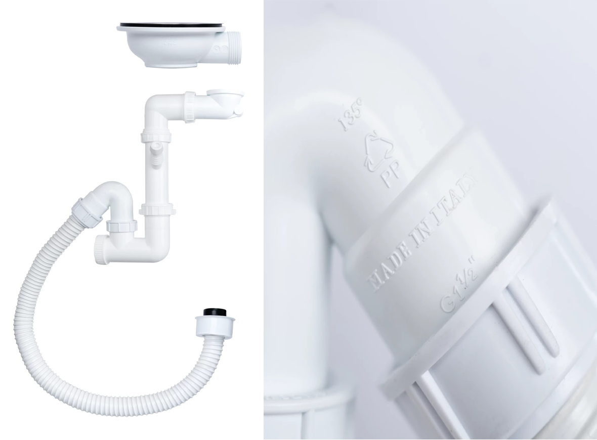 Chậu rửa bát TASCA PURA NT670U hoàn thiện hệ thống thoát nước với bộ xiphong được sản xuất 100% tại Ý. Đây không chỉ là một phụ kiện thông thường mà là một thành phần quan trọng, được sản xuất từ chất liệu nhựa cao cấp đặc biệt. Loại nhựa này đảm bảo tính an toàn khi tiếp xúc với nguồn nước sinh hoạt, không chứa các chất độc hại. Đặc biệt, nó có khả năng hạn chế sự cắn phá của các loài động vật gặm nhấm (như chuột), một vấn đề thường gặp có thể gây hỏng hóc đường ống trong tủ bếp. Tính năng này, kết hợp với độ bền cơ học cao, chống lại các hỏng hóc do va đập hoặc lão hóa theo thời gian, đảm bảo hệ thống thoát nước luôn hoạt động trơn tru, an toàn và bền vững trong nhiều năm, giúp bảo vệ ngôi nhà bạn một cách toàn diện.