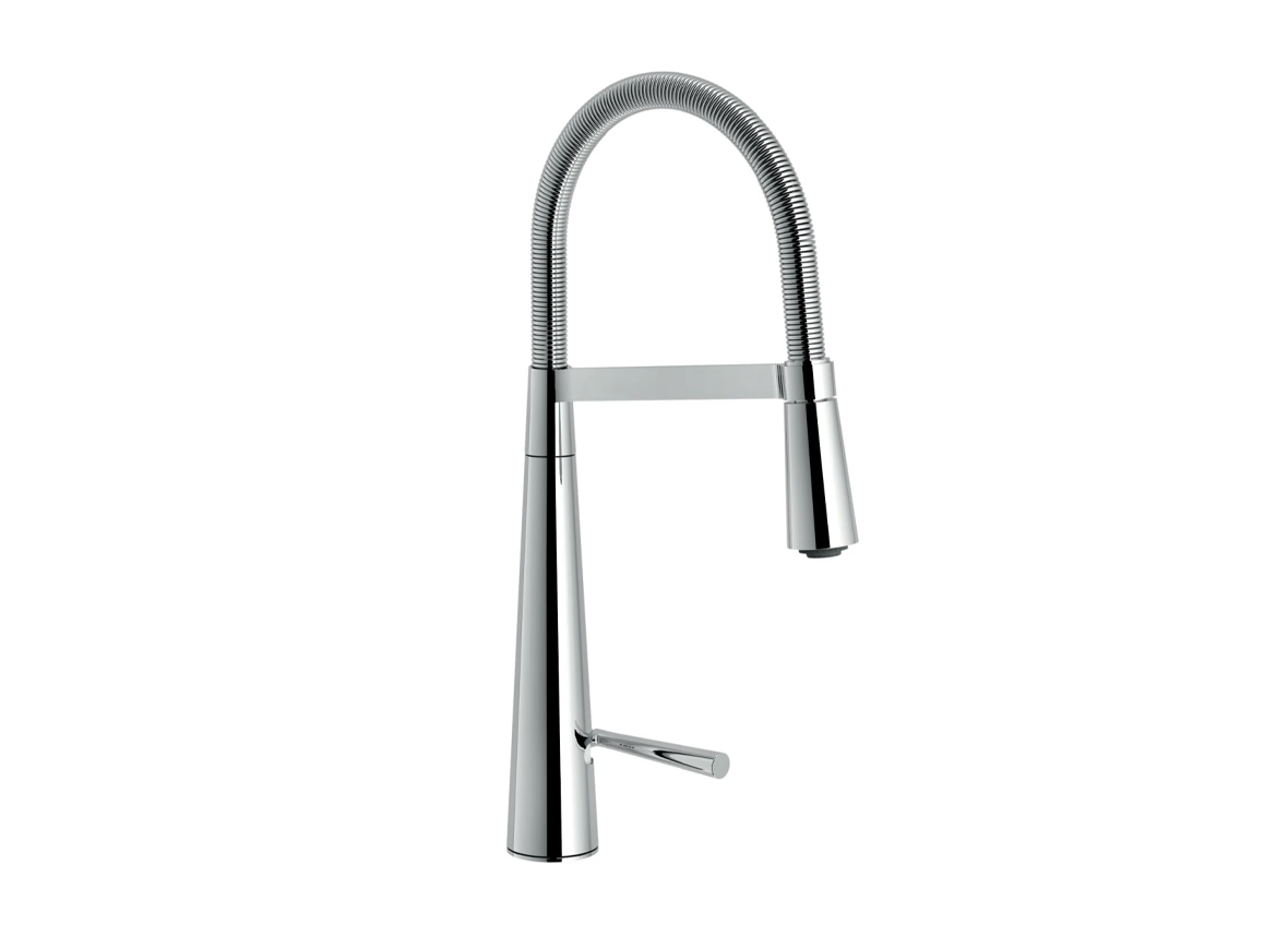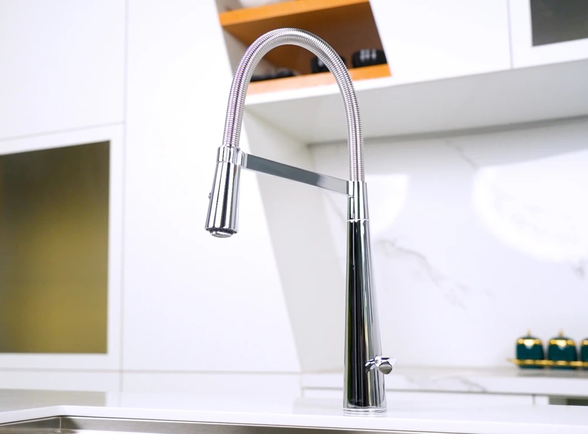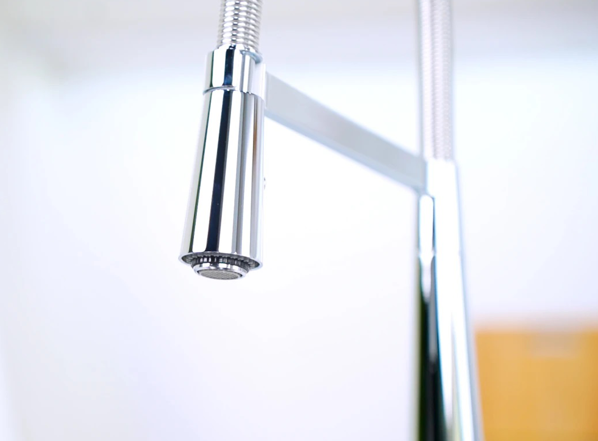Thiết kế đầu vòi cong bằng lò xo, tay cầm điều chỉnh 2 chế độ nước