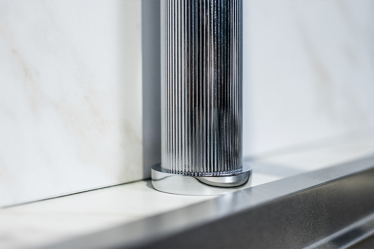 Bề mặt hoàn thiện theo công nghệ mạ PVD Chrome, giúp lớp kim loại sáng bóng, chống bám bẩn và dễ lau chùi – giữ vẻ mới sang trọng qua nhiều năm sử dụng.