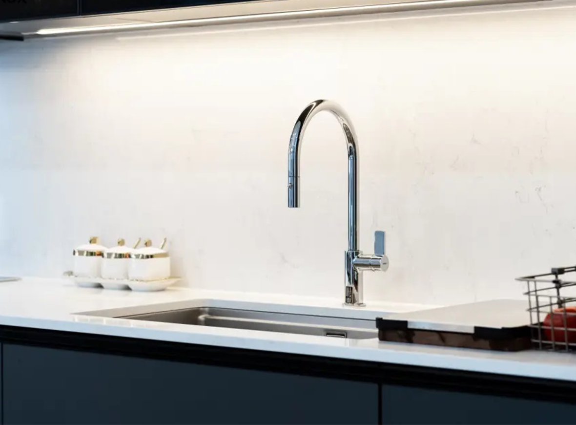 Lớp mạ Chrome hoàn thiện sáng bóng, đảm bảo độ bền cao, chống bám bẩn hiệu quả: Công nghệ mạ Chrome của vòi bếp Nobili không chỉ tạo nên lớp bề mặt sáng bóng sang trọng mà còn đảm bảo độ bền vượt trội theo thời gian. Áp dụng quy trình mạ nhiều lớp đạt chuẩn châu Âu, lớp chrome trên vòi Nobili giúp chống oxy hóa, chống trầy xước và dễ dàng vệ sinh, giữ cho sản phẩm luôn như mới sau thời gian dài sử dụng. Nhờ lớp phủ đồng đều, bám chắc, vòi không bị bong tróc dưới tác động của nước nóng, hóa chất tẩy rửa hay độ ẩm cao – đáp ứng hoàn hảo tiêu chuẩn của một gian bếp hiện đại và tinh tế.