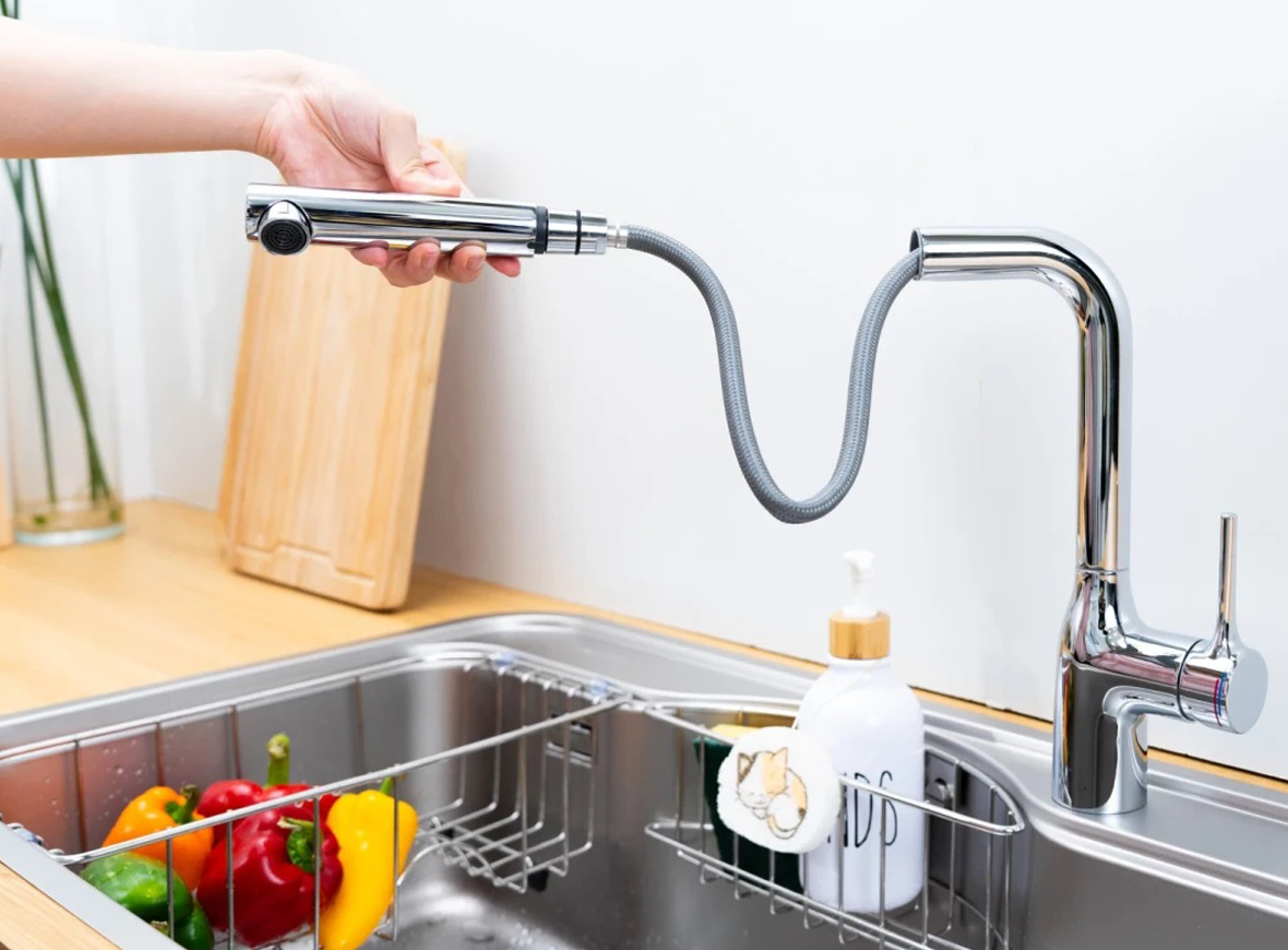 Vòi bếp dây rút nóng lạnh thiết kế linh hoạt, đầu vòi có thể kéo dài và xoay 180 độ giúp mở rộng phạm vi sử dụng một cách tối ưu. Tính năng này đặc biệt tiện lợi khi rửa thực phẩm, vệ sinh mọi ngóc ngách của chậu rửa hay chuyển hướng dòng nước linh hoạt. Đây là giải pháp lý tưởng cho những căn bếp hiện đại, đề cao sự tiện nghi và hiệu quả.