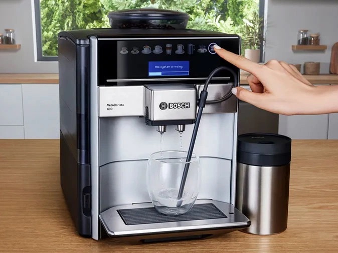 Một tính năng rất đáng chú ý của Bosch TIS65621RW là hệ thống tự động vệ sinh sau mỗi lần sử dụng. Máy sử dụng công nghệ Auto Milk Clean để tự làm sạch hệ thống sữa bằng hơi nước, giúp bảo vệ vệ sinh hoàn hảo mà không cần người sử dụng phải can thiệp mỗi ngày. Đây là một giải pháp tiện lợi, giúp bạn tiết kiệm thời gian và công sức vệ sinh máy.