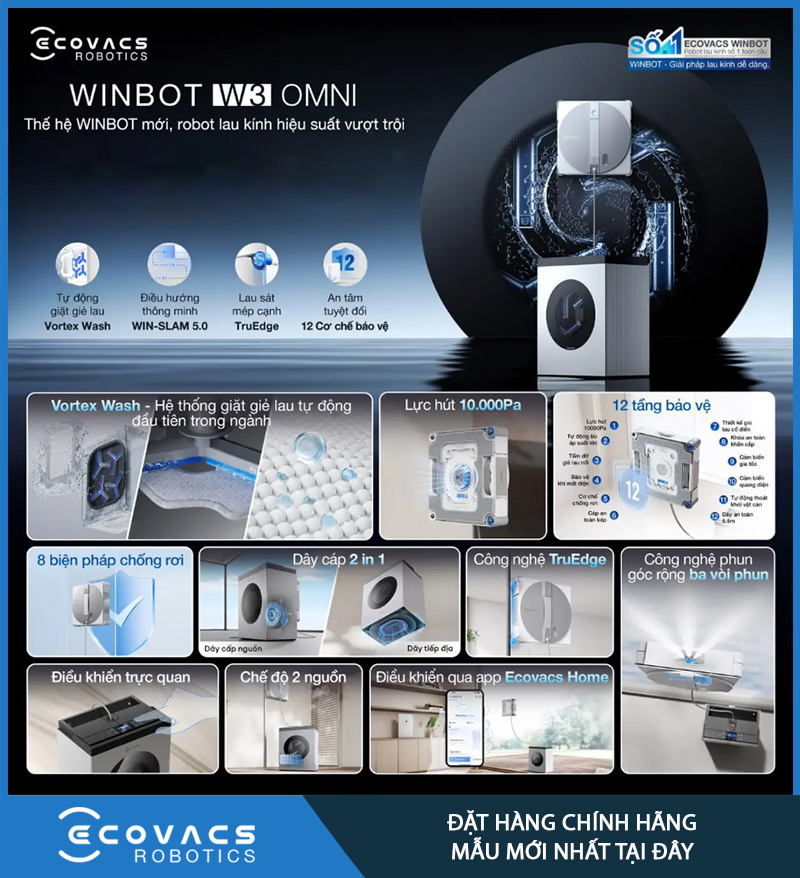 Ecovacs Winbot W3 OMNI – Hàng Chính Hãng là lựa chọn rất đáng cân nhắc nếu bạn cần một robot lau kính: