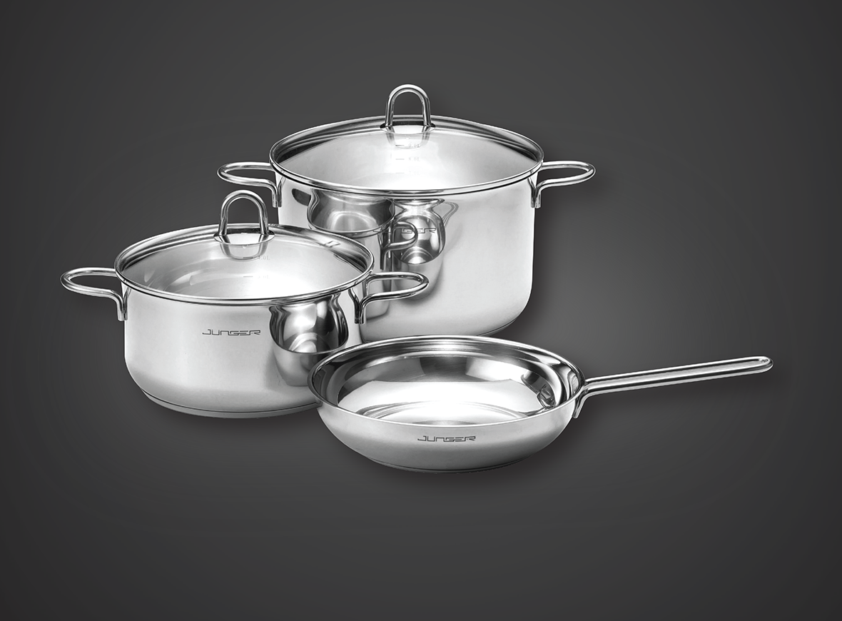 Bộ nồi inox Junger JG CWJ-050 cao cấp sở hữu 5 chi tiết, bao gồm 3 sản phẩm đun nấu: 2 nồi nấu, 1 chảo cùng 2 nắp kính đi kèm. Các loại nồi có kích thước khác nhau để người dùng lựa chọn theo nhu cầu chế biến.