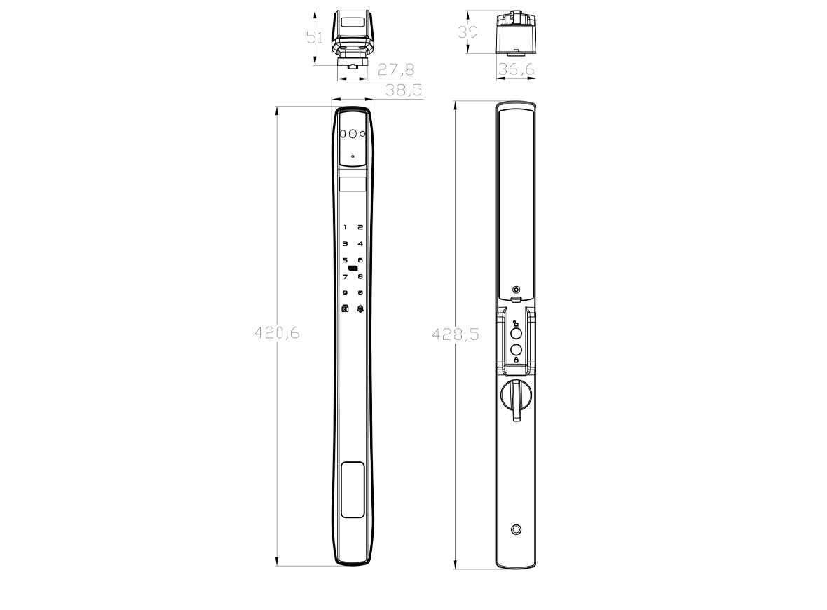 Hexa P300 mang lại cảm giác sang trọng ngay từ cái nhìn đầu tiên. Với thân khóa mỏng (chỉ 38.5mm mặt ngoài và 36.6mm mặt trong), chiều cao khoảng 428.5mm, sản phẩm này phù hợp với nhiều loại đố cửa khác nhau, từ gỗ đến kim loại.