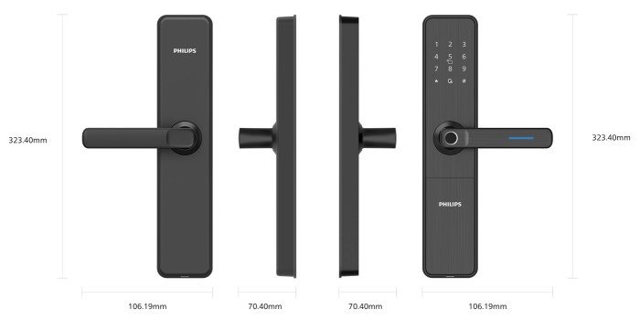 Philips DDL609-5HS là mã khóa tay gạt nhỏ nhất của hãng, với kích thước 65x 320 mm. Ưu điểm này giúp nó có thể linh hoạt lắp lên nhiều cửa, từ cửa chính cho tới các phòng ngủ, phòng làm việc,... Nhờ việc không kén cửa, sản phẩm trở thành lựa chọn lý tưởng cho những người yêu thích phong cách truyền thống, đơn giản nhưng sang trọng