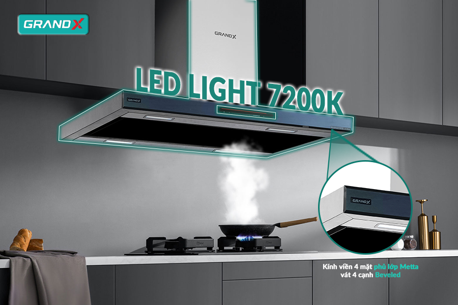 Ánh sáng LED tiết kiệm: Hệ thống 4 đèn LED Light (1.5W x4) ánh sáng 7200K, vừa tiết kiệm năng lượng vừa mang lại không gian bếp ấm cúng và sang trọng.