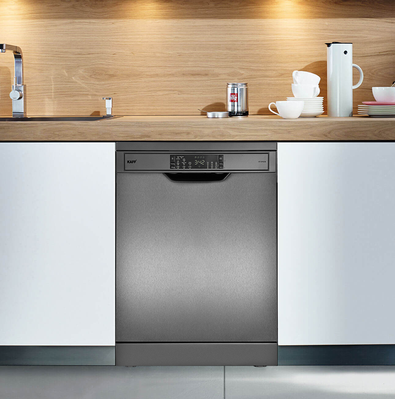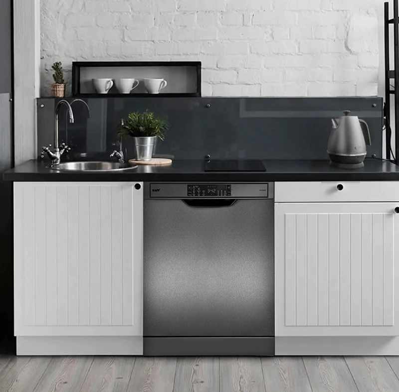 Tăng tính thẩm mỹ cho gian bếp gia đình: Thiết kế sang trọng, hiện đại máy rửa bát 15 bộ Kaff KF-SPA230 dễ dàng chinh phục được mọi không gian bếp. màu đen xám, tinh tế tới từng chi tiết, không khó để tạo điểm nhấn nổi bật.