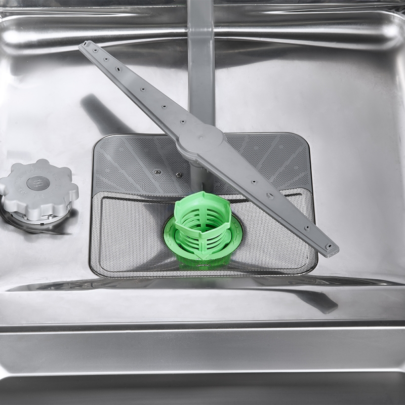 Ở phía trong bên của máy rửa bát Kaff KF-SPA230 có chứa ngăn chứa muối và ngăn chứa các chất rác trong quá trình rửa. Người dùng cần dùng loại muối chuyên dụng cho máy rửa bát. Mỗi lần đổ muối sẽ dùng được khoảng 1,5 tháng đến 2 tháng. Khi hết lượng muối cần thiết, máy sẽ báo hiệu ở trên bảng điều khiển.