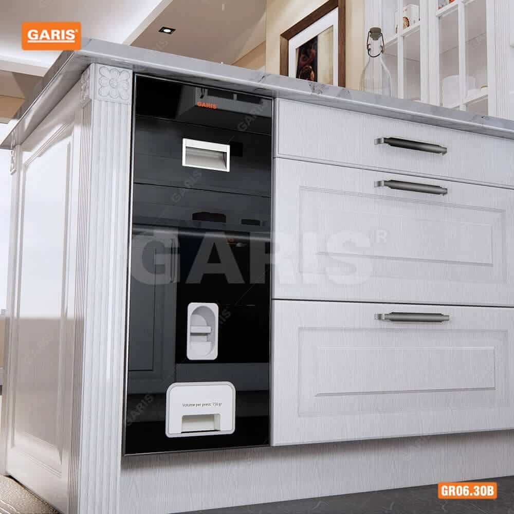 Thùng gạo mặt kính đen 15kg Garis GR06B là một sản phẩm thùng gạo âm tủ thông minh mặt gương với mặt ngoài được thiết kế bằng mặt gương đen cao cấp. Bên trong thùng gạo là vật liệu inox chống rỉ sét và được lắp đặt âm vào tủ bếp chắc chắn. Thùng gạo được thiết kế kín, chống ẩm thấp và mối mọt khi đựng gạo